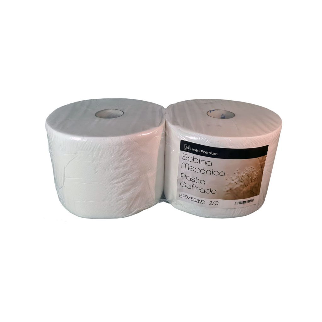 Bobina celulosa portabobina laminado en pasta laminada de 2 capas. Es un producto para uso en taller mecánico, hostelería, gasolineras. 500 metros por bobina y pack de 2 unidades.